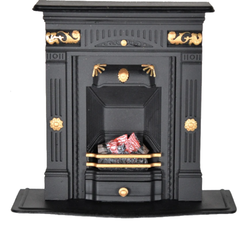This dollhouse miniature 1/24 scale little fire is made of resin and fitted with a flickering 12V LED and a connection cable approximately 30cm / 11 inches.